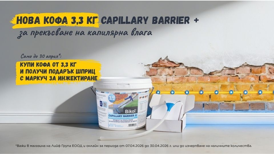 Продукт: Промоцията важи единствено при покупка на BIKOL Capillary Barrier в разфасовка от 3,3 кг.