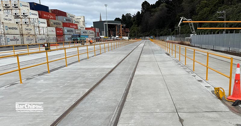 Като част от проект за реконструкция на стойност 13,5 млн. долара, контейнерният терминал Port Chalmers подменя своята 50-годишна жп настилка с нова 340-метрова четирирелсова бетонна конструкция, армирана с фибри BarChip. Допълнително са изградени и външни настилки, подсилени с фибрите BarChip.